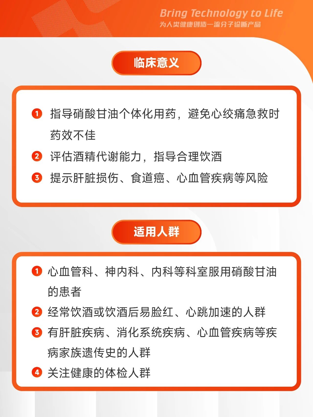 评估酒精代谢能力,预测肝脏损伤及心血管疾病等风险。